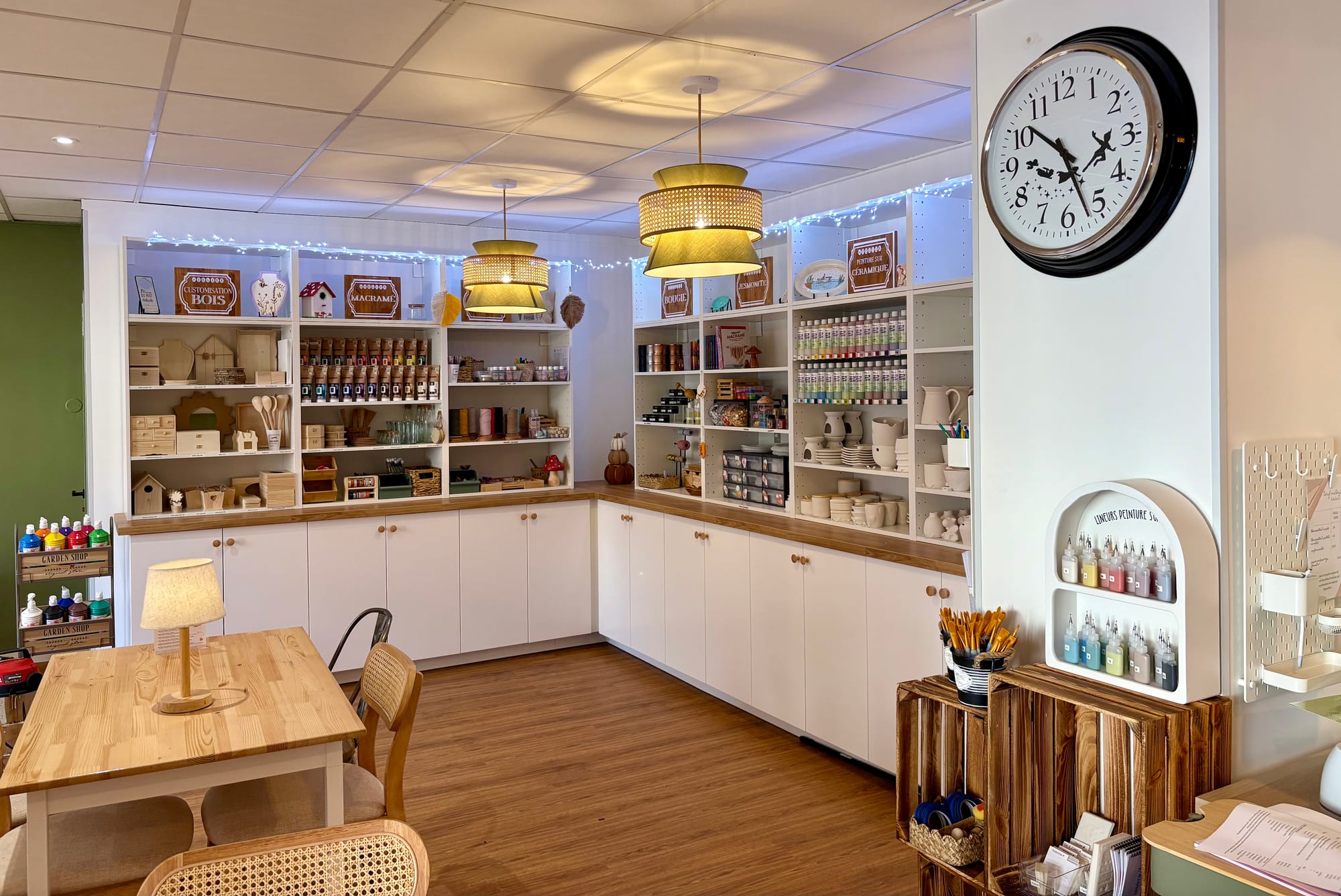 Profites d’un libre service à ta disposition où tu trouveras de la peinture, des décorations, des tampons, des pyrograveurs, des pistolets à colle, ...